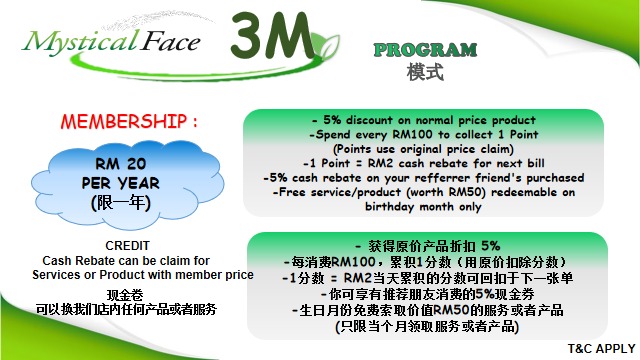 * Free services/products on the birthday month (worth RM50) available redeem on the birthday month only